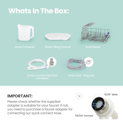 - [ Ultra-compact Design]: The ultra-compact design allows the dishwasher to wash 30+ items(Max to 9.5-inch plates) at a time while occupying a small area, which is ideal for small houses, apartments, dorms, boats, and campers/RVs.