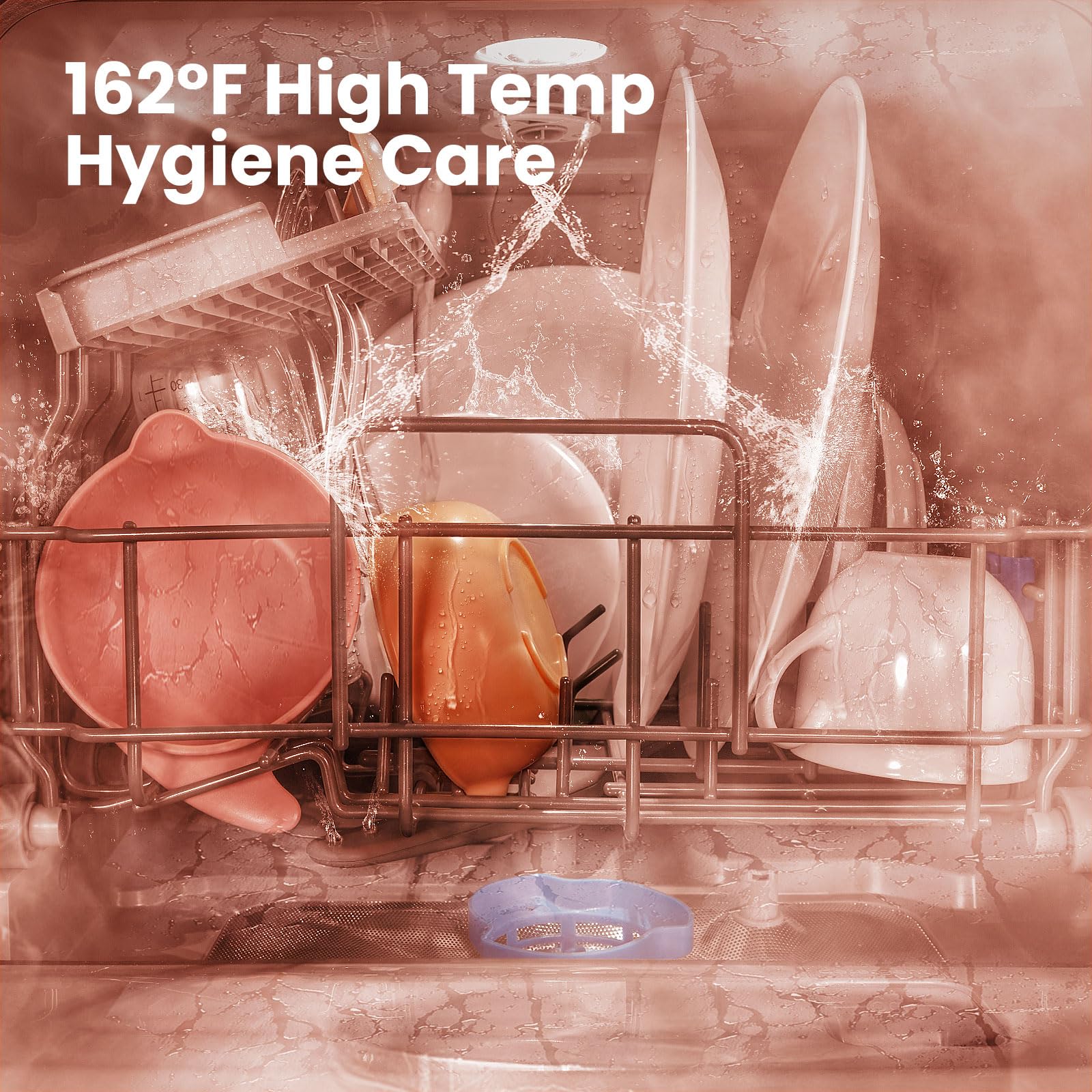- [ 192 ℉ HIGH-TEMP HYGIENE ]: The HYGIENE wash cycle boosts water temperature to 162 ℉ Rinsing and Max to 192 ℉ which can tackle even the heaviest soiled dishes and is also suitable for cleaning baby bottles and children’s dinner sets.